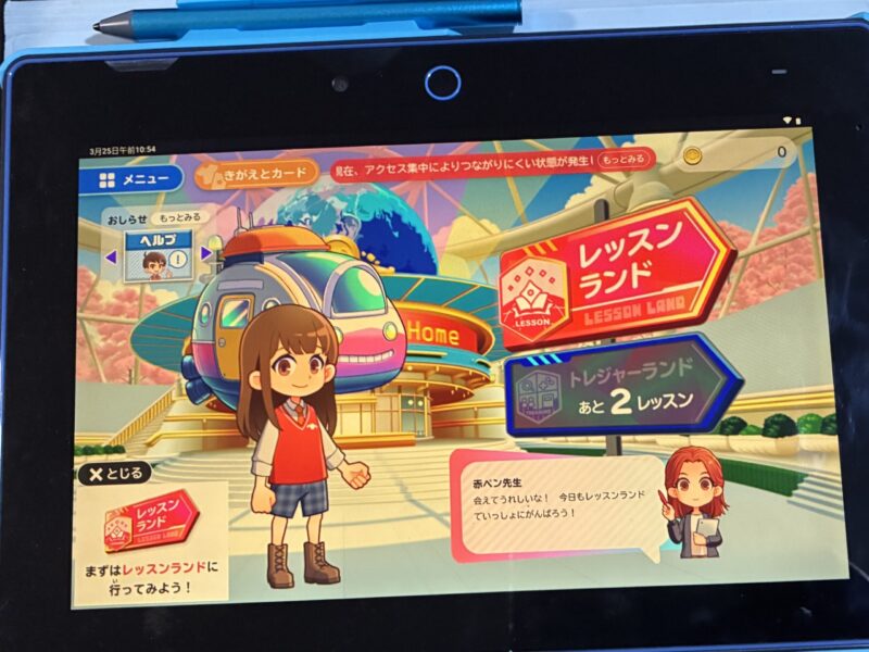 長女はせっかちなので、ホーム画面のお知らせを聞いていられず、自ら、スタート画面の設定変更方法を見つけて「教室」に変更していました。先にメインレッスンに取り組んでから、ホーム画面を見に行ってます。